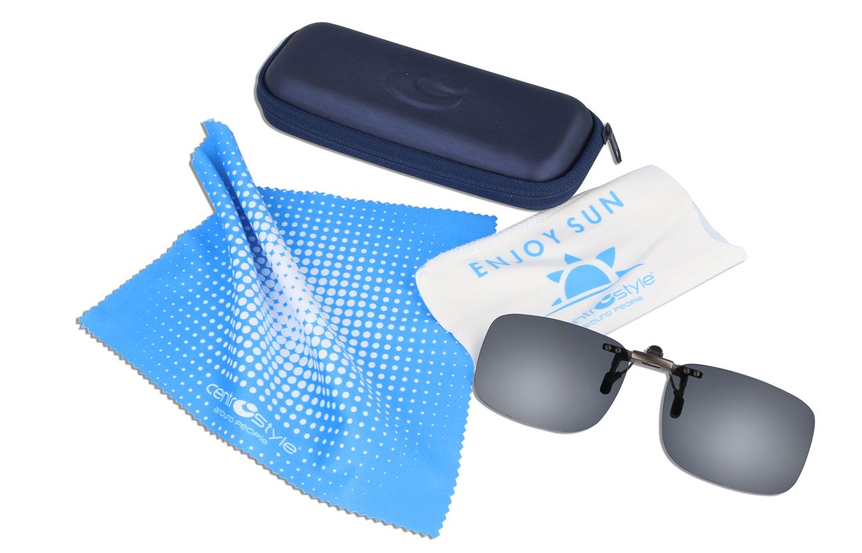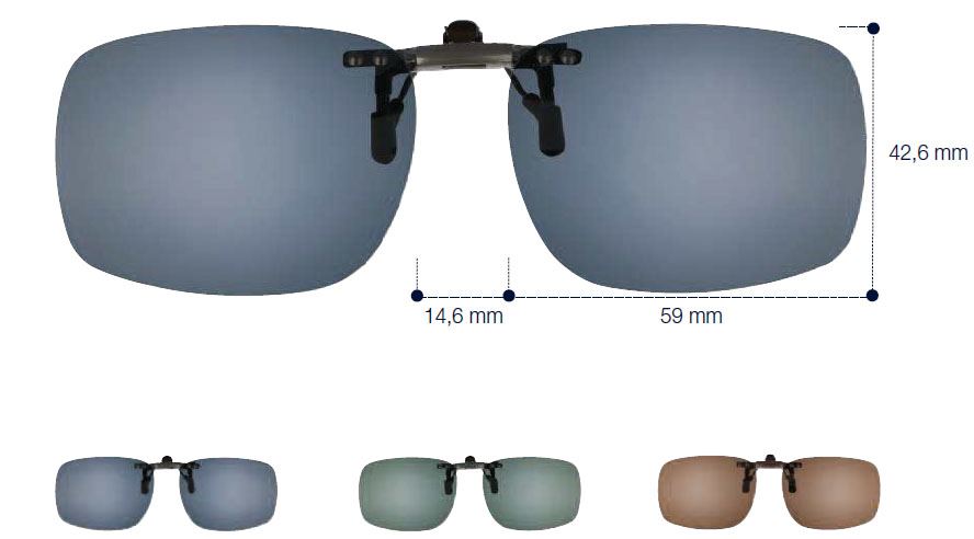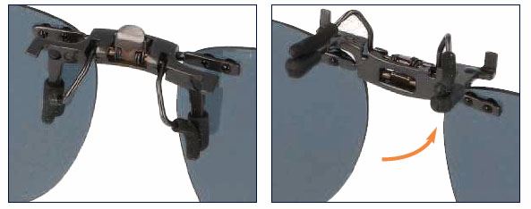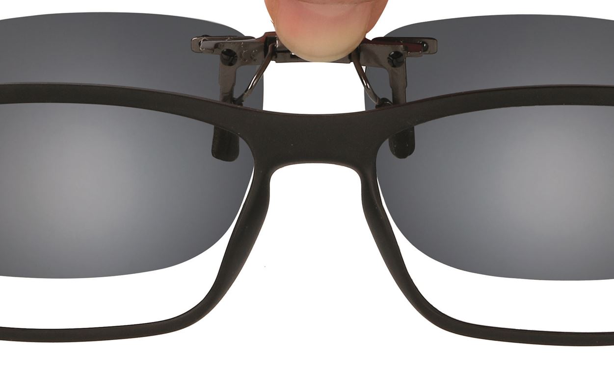 Solskydd som du fäster på dina glasögon. Uppfällbar modell som kan vara bra vid bilkörning, när du växlar med ljus och mörk miljö, inomhus etc. Detta är en ny modell av uppfällbar förhängare som har en mer diskret och snyggare konstruktion av fästet.